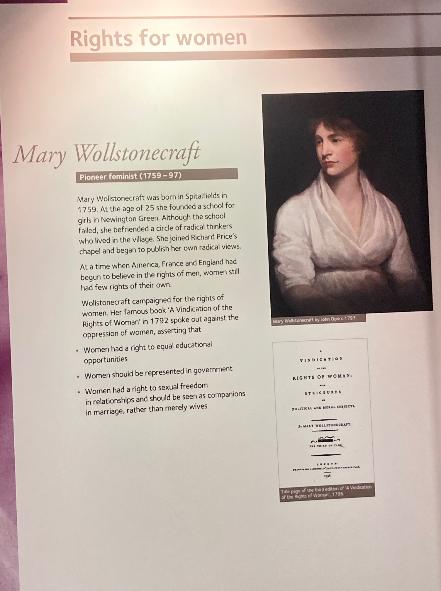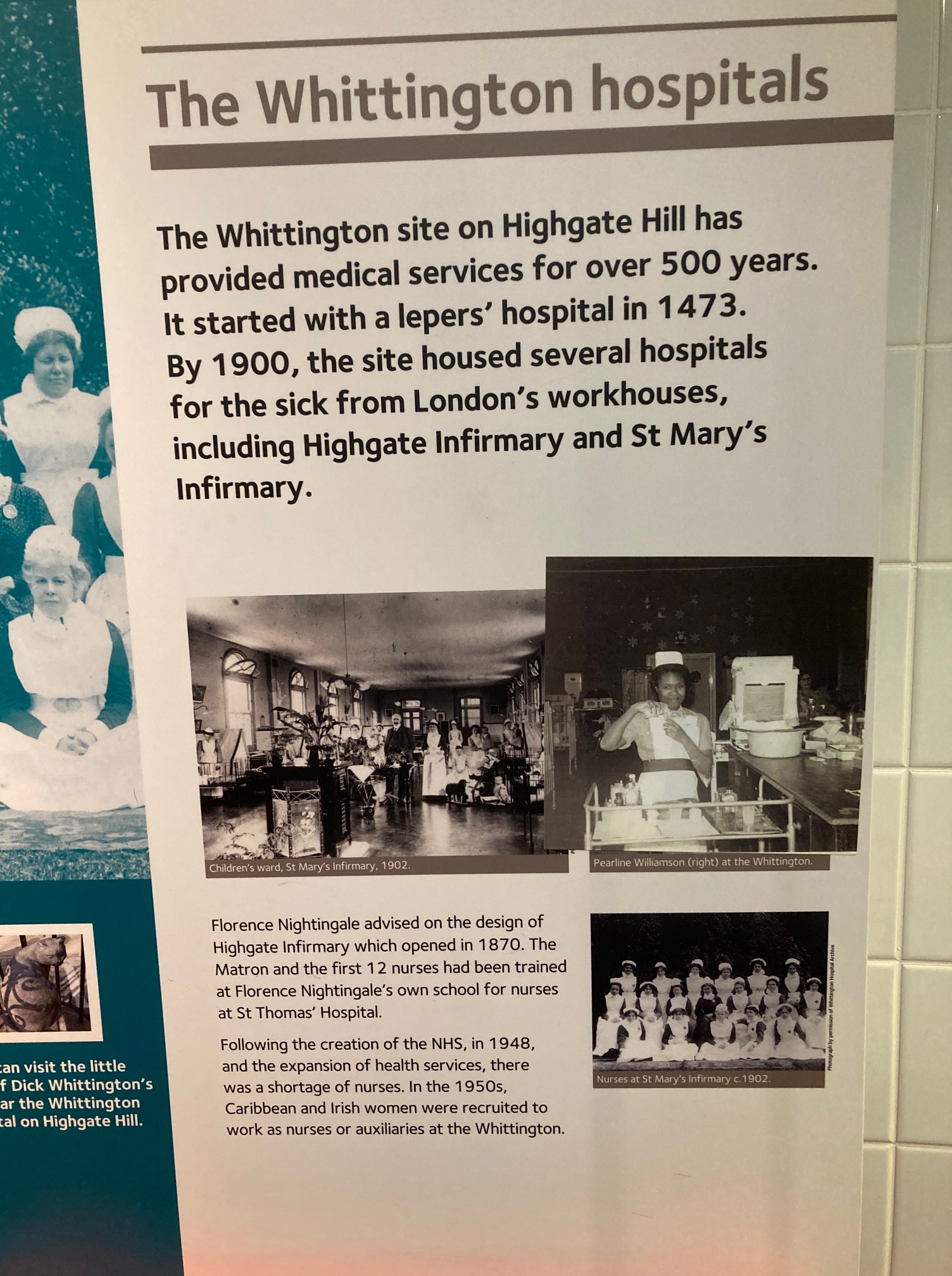 This museum is well worth a visit – lots of information about the area during the war, famous people who lived in Islington such as Mary Wollstonecraft (18th century pioneer feminist – see also the end of Route 21 in Newington Green where there is a statue dedicated to her) and the history of the Whittington hospital.