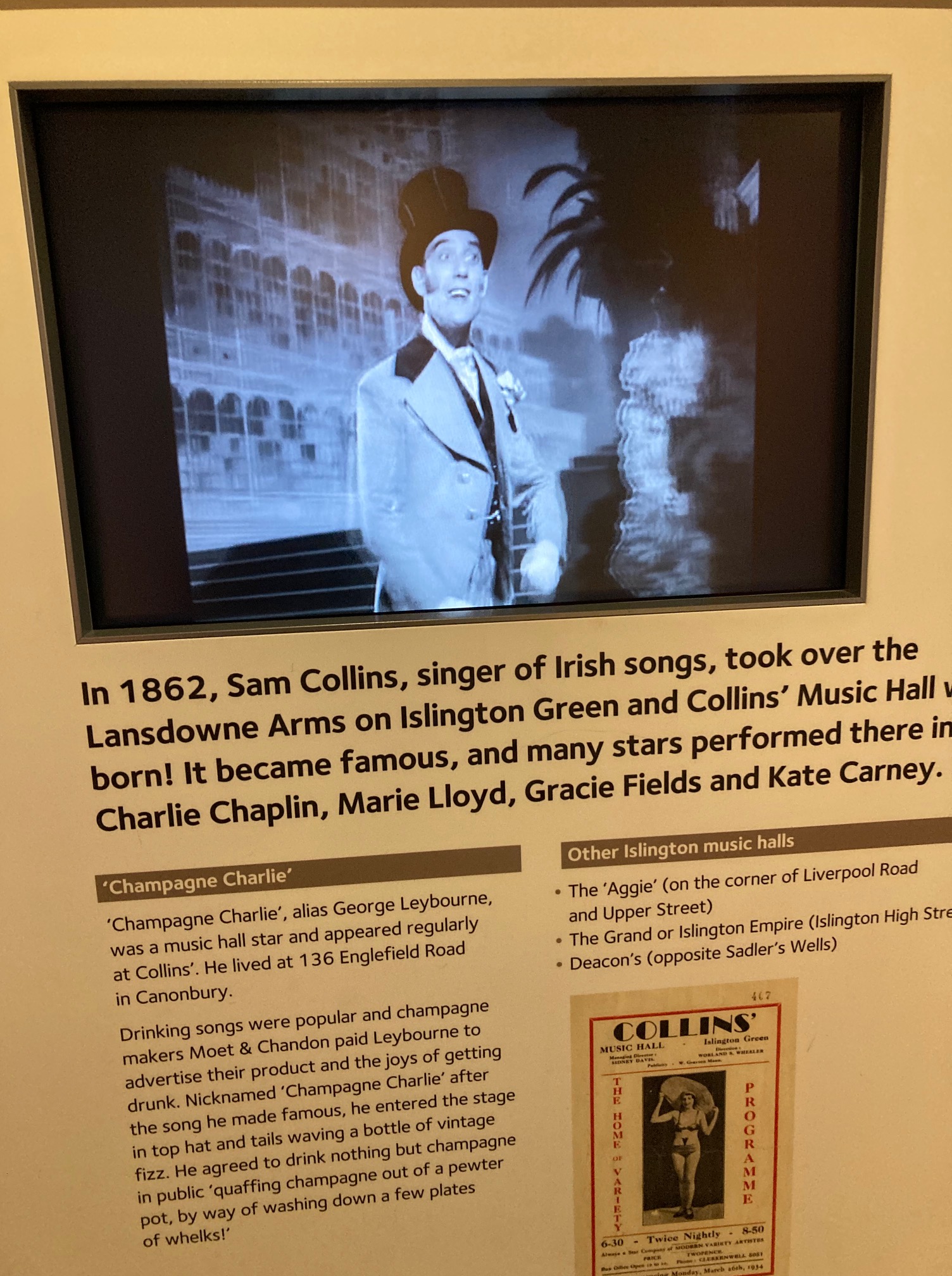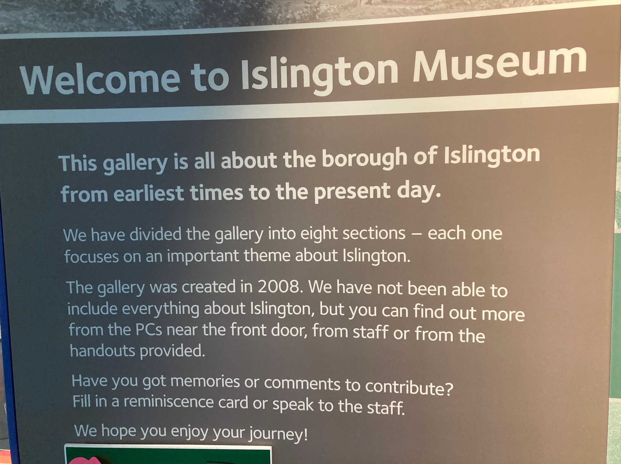 After a pleasant amble along Fonthill Road, looking at the bling shops, I got back on the #4, getting out at Percival Street and headed for Islington Museum. This little-known gem portrays the history of Islington, from its inclusion in the Domesday Book in 1086, to the arrival of Music Halls such as Collins’ on Islington Green.