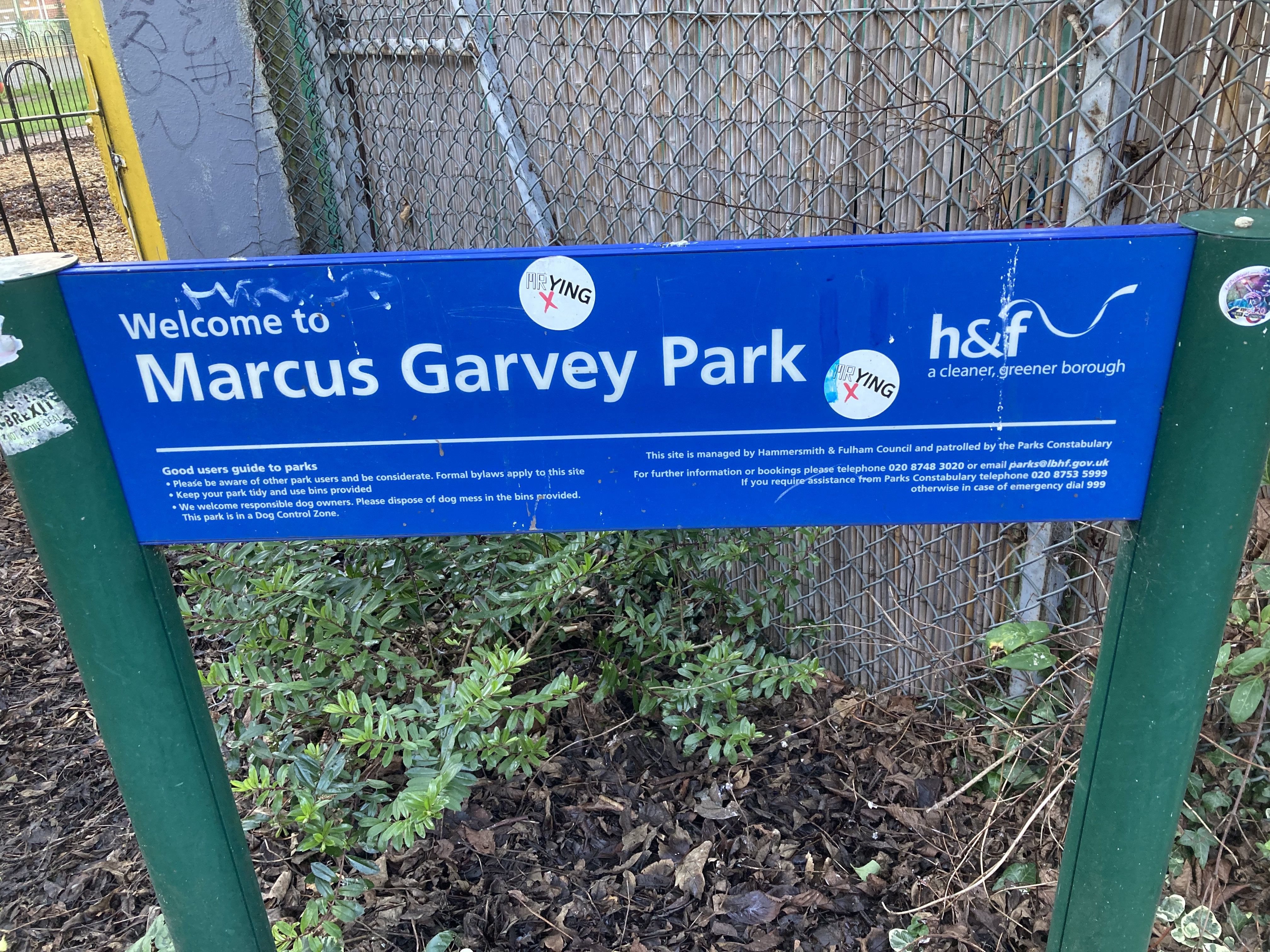First stop for me today was to visit Marcus Garvey Park (North End Road stop). The park is named after Marcus Garvey, a civil rights campaigner who had lived round the corner. It’s pretty small and it’s mainly for kids to play. There is allegedly a tribute to local black history but it wasn’t obvious to me!