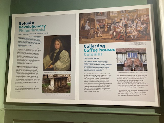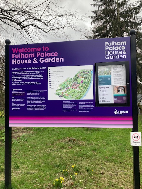 I walked around Bishop’s Park but couldn’t walk in the Palace grounds as they were shut due to the recent storms. I found the entrance to Fulham Palace and was happy to see that it was free entrance. The courtyard and Great Hall are both Tudor having been built around 1495. The palace was home to the Bishops of London but now the bishop resides at the Old Deanery near St Paul’s.