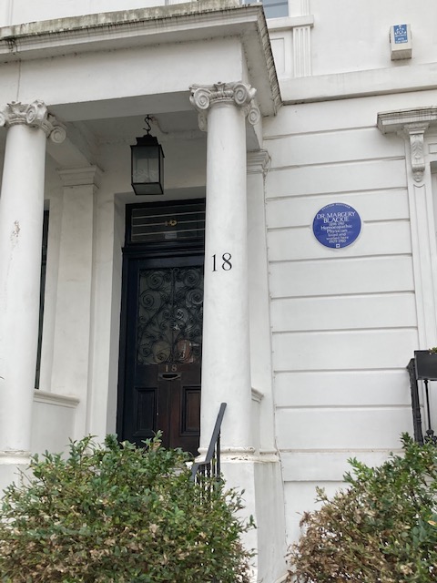 Next stop was Onslow Square, another residential garden square. Building started in 1845 and the most notable former resident is William Makepeace Thackeray at number 36. Interestingly, there is a wall plaque but not a blue one. From here I walked to Thurloe Square and found the Thin House – originally built as artists’ studios, they are now residential and are very sought-after.