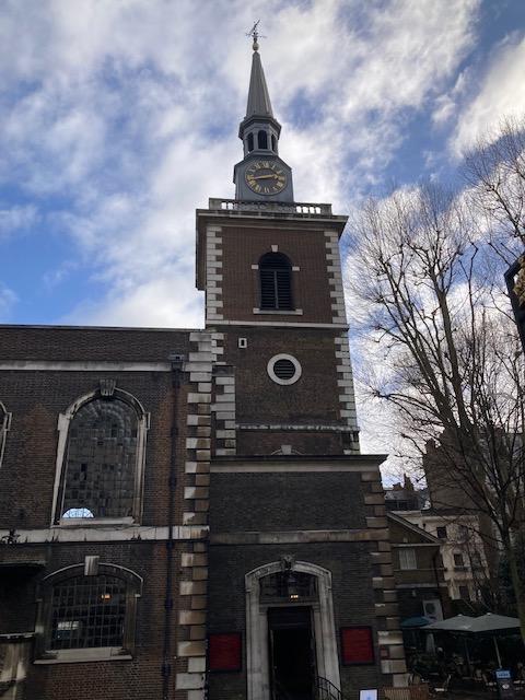 Back on the bus to St James’s Church (Piccadilly Circus stop). The church was smaller than the Oratory but no less beautiful inside. There are many memorials for people who have passed such as Mary Beale and William Blake. The organ is big and dominates the church.