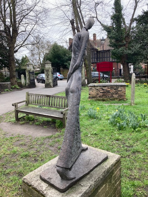My first stop was on Putney Bridge and I was reminded that this is where I had positioned myself to watch the Boat Race a few years ago. I walked round the corner and found myself in the grounds of the All Saints Church, which was pretty remarkable. Some interesting statues and memorial stones – one of which was for those who had fought and died in the Spanish Civil War
