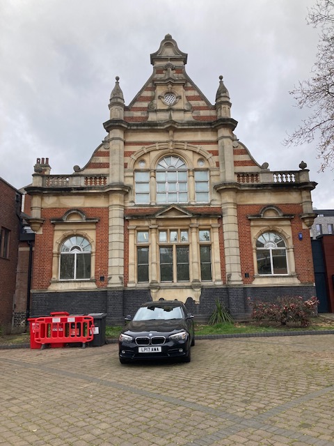 Final stop was the bus terminus itself. I walked round the corner to Walthamstow Town Square Gardens which were disappointing as it seems to be just a walkway with grass and paths. However, I did see Walthamstow Library which is a lovely building, which has its origins in 1894. I didn’t go in but now wish I had because I missed a stain glass window with an owl inserted.