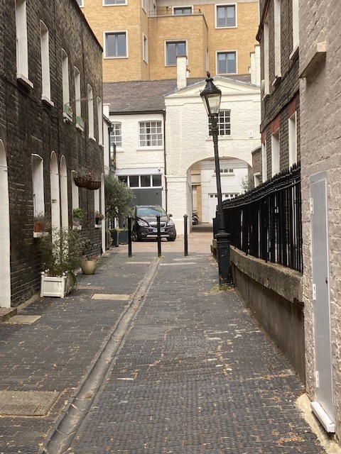 Back to the bus and alighted at Hyde Park Corner from where I walked in the underpass to get to Old Barrack Yard. In the late 18th century, barracks were here for the Grenadier Guards. It’s possible that some of the buildings around the arched entrance to the yard, are part of the original stables. There is a leaning lamppost in the middle of the yard and at the southern end, is a lovely looking pub called the Grenadier.