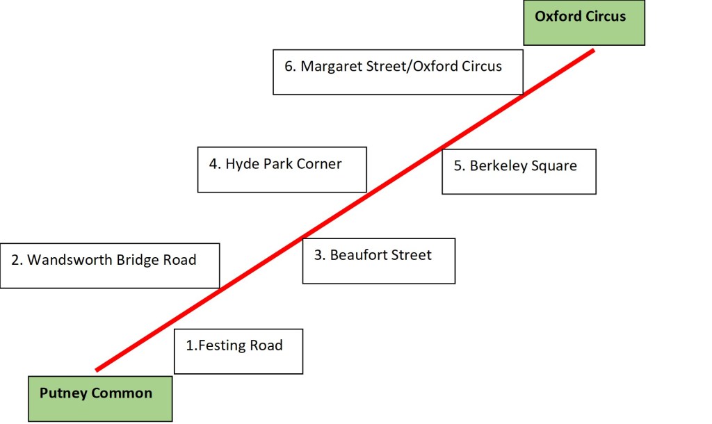 Back on the bus to Berkeley Square. As it was lunchtime by now, the square was filled with people eating lunch and enjoying the sunshine. The square itself is now a mixture of shops, offices, residential properties and clubs (for example Annabel’s). At number 50 is the former home of George Canning with its reputation of being a haunted house. 45 Berkeley Square is the former home of Clive of India.