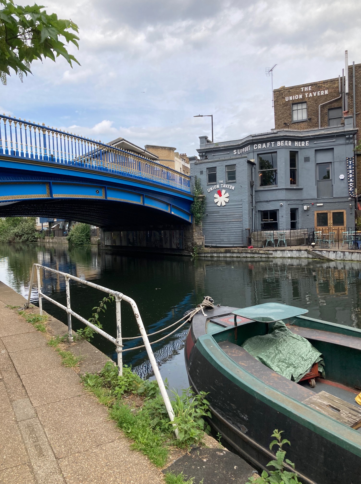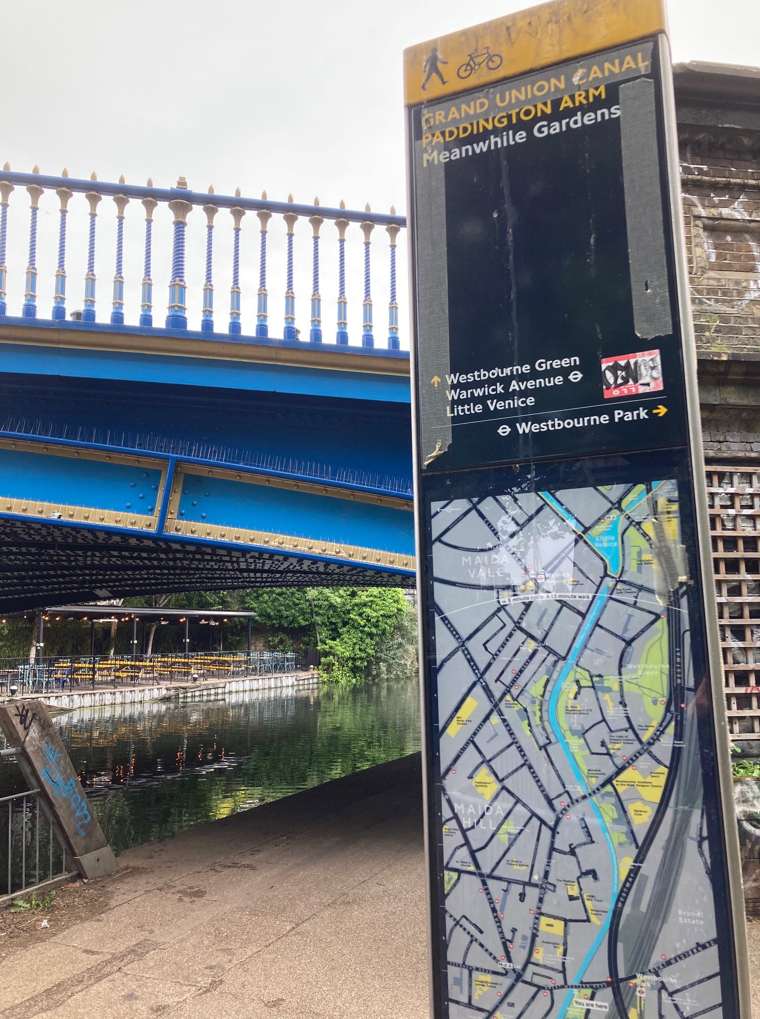 Before getting on the bus, I did what I’ve started doing each week – exploring the immediate area near the bus terminal. I wasn’t disappointed either – I found part of the Grand Union Canal at Paddington Basin and Meanwhile Gardens with a sculpture and skate park. Interested in the name of the gardens, I discovered that the council didn’t want to give permission to transform the derelict land into a garden but said they might do something in the future. So they agreed that in the meanwhile, Jamie McCollough, the artist and visionary, could go ahead.