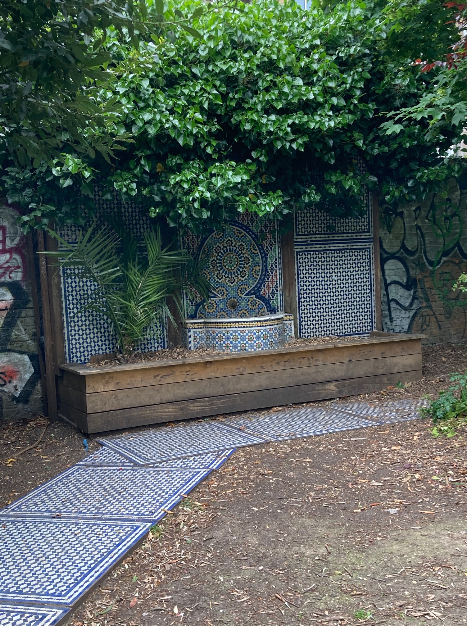 From there I went to Trellick Tower, a grade II listed tower block. Construction began in 1968 in order to replace sub-standard local Victorian housing. However, by the time it opened, high-rise tower blocks were becoming unfashionable. By 1991, it had again won favour and became a respectable place to live. Round the corner from the tower, I discovered a lovely Moroccan garden.