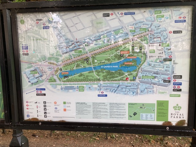 After this cultural delight, I got back on the bus to Parliament Square and then walked round to St James’s Park. For some reason, this seems to be lesser known than the other major London Parks such as Hyde, Regents and Green, but it is no less wonderful. It’s opposite Buckingham Palace and Wellington Barracks so is suitably situated for tourists.