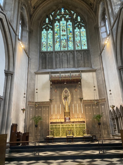 Thinking that was my final place to visit, I was pleased to find St Michael’s Church open so I popped in to take a look. It was built in the late 19th century in a gothic revival style. The Church has hosted a contemporary art installation behind the font by the Royal Academy’s Maciej Urbanek. The Work, titled ‘HS’, presents an abstract and subversive take on the classic image of the Holy Spirit descending as beams of light. Interesting to see and worth a visit.