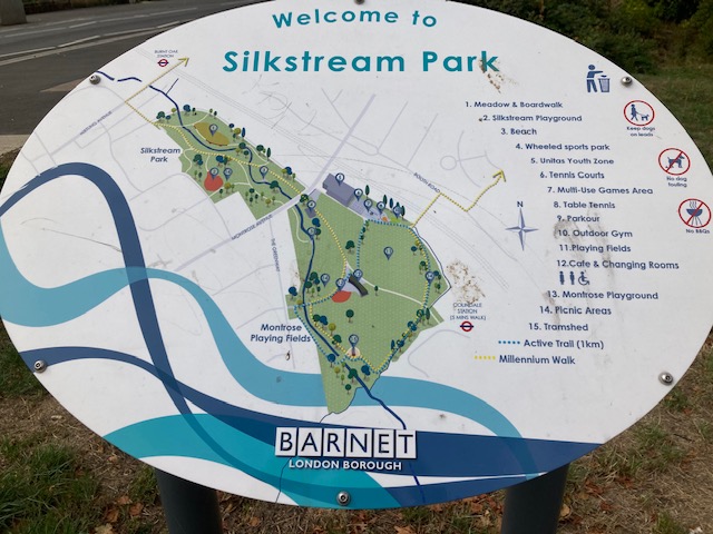 First stop today was at Montrose Avenue, to see the Silk Stream in Silkstream park. It’s a lovely park with the stream flowing through the middle as well as having sports facilities – including a skateboard park.