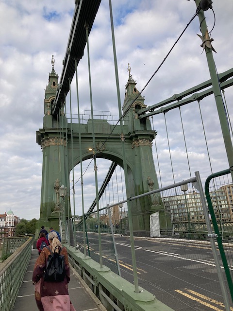 Back on the bus to the end of the route at Castelnau. Very near the stop is Holy Trinity Church which had a very pleasant Memorial Garden, laid out in the shape of a Celtic cross. From here, I walked over Hammersmith Bridge which is currently closed to traffic and wend my way home.