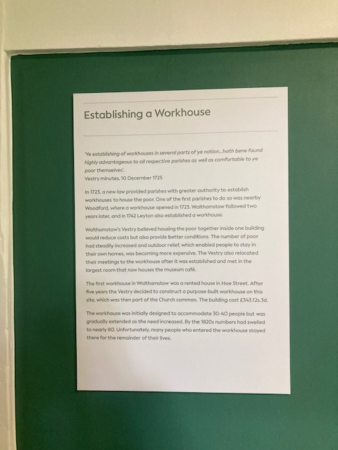 The Vestry House Museum is nearby and is free to visitors. It’s a small museum but is steeped in the history of Walthamstow. The building was constructed in 1730 to house the parish workhouse, and was later used as a police station, an armoury, a building merchants and a private home. Descriptions of the creation and the closure of the workhouse are posted on the walls and there is a magnificent oak fireplace in one of the rooms. Upstairs are displays of Waltham years gone by, all beautifully laid out and easy to see.