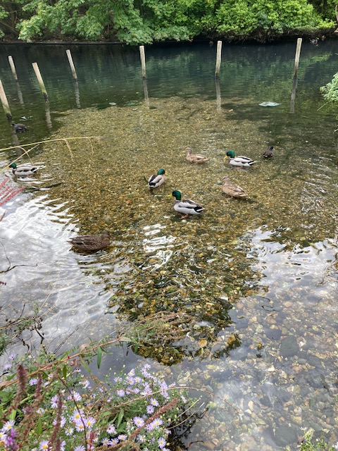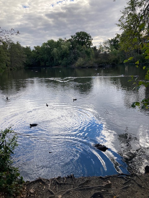 Walk back to Walthamstow bus station to pick up the start of the number 34 and stay on the bus until Pymmes Park bus stop. It’s a lovely walk along Pymmes Brook, with ducks and other birds in profusion. Enfield council has created Pymmes Park Wetlands, to filter and clean the rain which runs off the roads in the area, which can contain oils, tars and sediments further polluting the lake and brook.