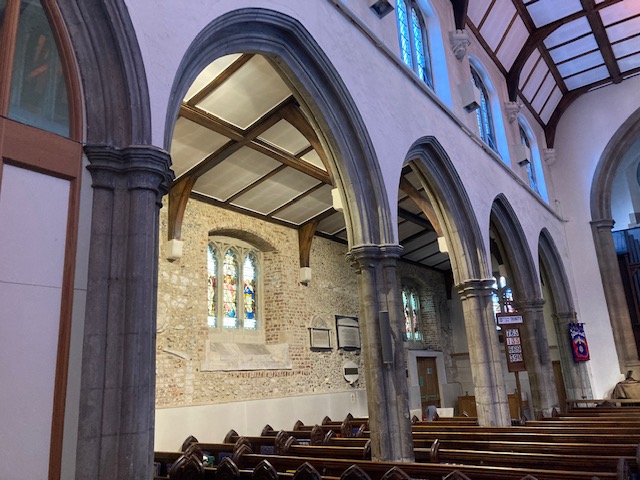 Finally, round the corner from the museum is the Old Courthouse Recreation Ground which is a bit of an oasis away from the busy High Street of Barnet and also St John the Baptist church. The church dates back to before 1272 and still has some of the original walls and arches. The tomb and bones of Thomas Ravenscrofte, a local benefactor who had died in 1630, were moved from the chancel of the old church to a new chapel built for the purpose. There are some beautiful stained glass windows and a font made from ancient marble.
