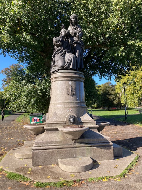 Walk back to the common and cross the road to see the Temperance Fountain, a statue that depicts a woman giving water to a beggar. The purpose of fountains like this, was to encourage people not to drink beer by supplying safe and free water. Beer was the main alternative to water, and generally safer. The temperance societies had no real alternative as tea and coffee were too expensive, so drinking fountains were seen as an attractive alternative. The common itself is huge and well worth a visit – with three ponds, one of which is easily accessed near the Fountain.