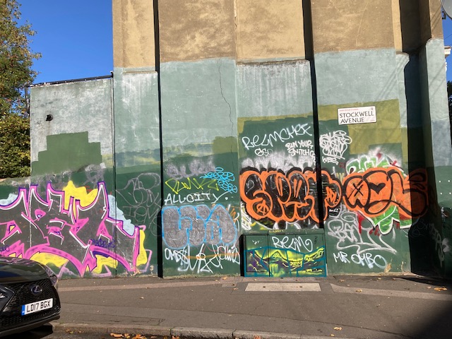 Now time to get back on the bus and alight at Gresham Road/Brixton Police station to visit Wallflower Brixton, an ongoing portrait photography project set up by local photographers in 2021. They placed a chair and lights in front of the big green wall and waited to see who would turn up. Now sadly, there is graffiti and no-one’s photo is being taken. A short walk away from here is Max Roach Park and a Soweto Sculpture – a haunting reminder of the 116 children who died in Soweto in 1976.