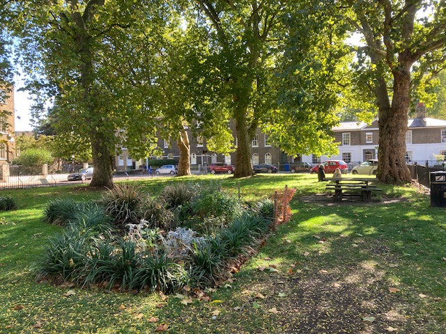 Next stop was at Bowyer Place and a walk round to Addington Square, a Georgian and Regency square named after the then PM Henry Addington. It was once the home of the Richardson Gang (rivals to the Krays) and at one time had a public baths and swimming pool, now the garden in the middle of the square.