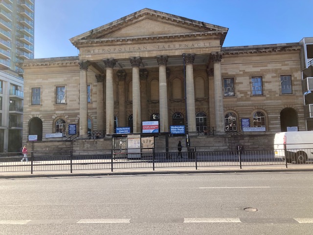 Bus 35 then goes to Hampton Street stop where Elephant Park is situated. There are numerous statues of elephants dotted around the park, which is being renovated to include many retail outlets as well as homes in what is now called Castle Square. Plenty of eating places and places for kids to climb and enjoy. Not too far away is the Metropolitan Tabernacle, a large Baptist church. The present site was acquired for the Tabernacle partly because of its prominent situation and partly because it was thought to be the site of the burning of the Southwark Martyrs. For this reason the foundation-stone bears the words: ‘The blood of the martyrs is the seed of the church’.