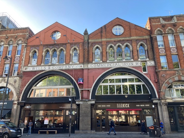 At the end of bus route 35, is the building formerly Wells & Company Commercial Iron Works in Shoreditch High Street. Built in 1877 this was the showroom, shop and factory of Edward Wells who ran a wholesale ironmongers here. Opposite this building is Shoreditch Town Hall, opened in 1866 as a Vestry Hall and was used as a music hall then later as a venue for boxing matches.