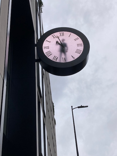 Before getting on the number 46, find your way to Eastbourne Terrace and opposite the entrance to the Elizabeth Line. Outside number 50, look upwards and you’ll see a man in a clock. Designed by Maarten Bass, a Dutch artist, the man in the clock is rubbing the hands and numbers off the face of the clock and replacing them in a twelve-hour looped performance, with the hands being replaced and redrawn every minute.