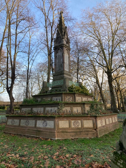 The 46 stops outside St Pancras Old Church and churchyard. Walk around the churchyard and you’ll see tombs and mausoleums of some famous people, including John Soane, the celebrated architect and Mary Wollstonecraft, one of the founding feminist philosophers. There is also the rather grand Burdett-Coutts memorial sundial erected in 1877–79, at the behest of Baroness Burdett-Coutts. The former churchyard was closed to burials in 1850, but some graves were disturbed due to the construction of St Pancras railway station. The obelisk acts as a memorial to people buried near the church whose graves were disturbed.
