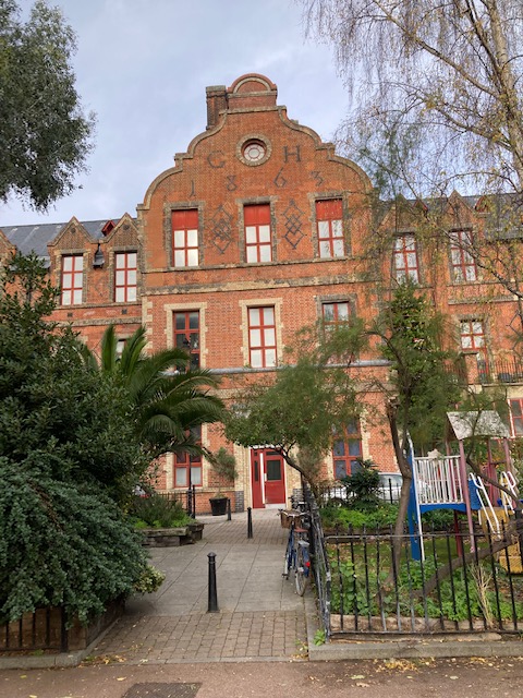 Eastern Curve Garden , Hackney Peace Carnival mural , German hospital and Clowns Church