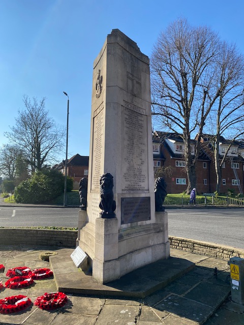 The War Memorial is a stone obelisk with bronze lions and plaques set on a roundabout and is Grade II listed. It commemorates men and women from Orpington who died during the 20th century wars, starting from World Wars I and II and including the Korean War and Suez Crisis. It has the names of all 117 and 424 people who died during the 2 world wars.
