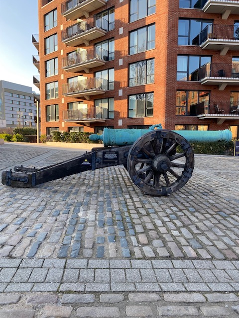 Over the road is the Guard House, which has a bronze statue of Nike in front. The House was also commissioned by Viscount Beresford. Until 1844, security at Royal Arsenal was provided by the Royal Artillery. Guard duties were then shared with the Metropolitan Police who took full responsibility in 1861. These days it’s a pub/restaurant and is a grade II listed building.