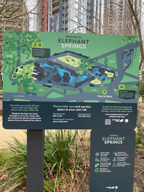 Near this stop is Elephant Springs. It’s an urban oasis crafted from water, rock and sand. The name refers to the water springs that bubble from several different water effects, including cascades of water rushing down rock channels and babbling streams.