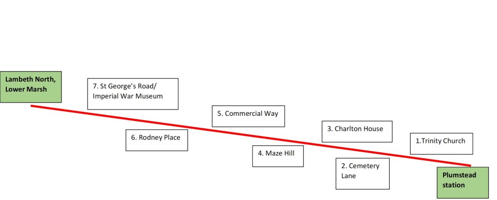 Close to the bus stop is the Andrew Gibb memorial shelter and drinking fountain. He is the same Andrew Gibb whose memorial is at Charlton cemetery (see above). He was a Scottish ship-repairer and philanthropist and was one of the first aldermen in the Borough of Greenwich. Just over the road is the Greenwich War Memorial for those who died during WWI. And in the vicinity are some rugged green areas, which look tempting to explore.