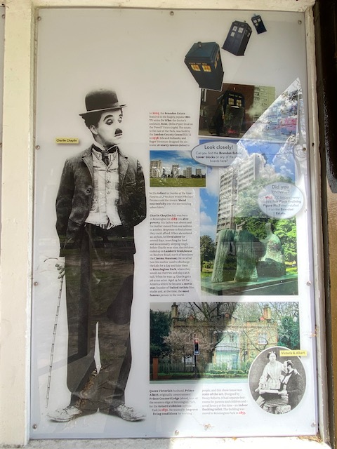 Another feature of Kennington park is a History Hut, telling the story of the local area as well as former famous residents. One such is Charlie Chaplin who was born in Kennington in 1899 in dire poverty. The hut was opened in 2021 by a local MP and is set within a 1930s shelter.