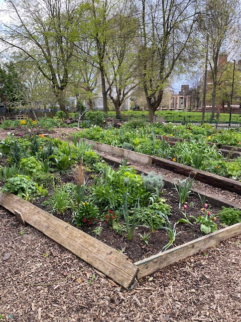As it’s so near the bus-stop, it’s worth taking a step within Lambeth Walk Doorstep Green. The green is on the site of some old housing that was demolished in the 1970s. It is known as a “Field of Hope”, with daffodils planted in memory of loved ones, giving hope to the bereaved that there is a hopeful future.