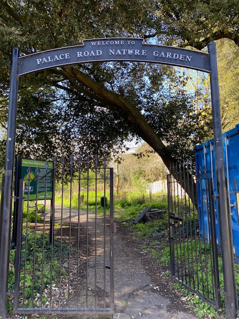 Also around this area is the Palace Road Nature Garden. This has been created on land that had once been a large house, demolished in the 1980s. Much of the trees and plants were replanted so there is now a mix of the native and exotic. The pond has been restored and offers habitat for aquatic plants as well as water-loving animals such as newts, frogs and toads. During the summer of 2014 a large mural was painted on a previously blank wall that faces the nature garden. The six panels depict wildlife from six different continents, while local wildlife is represented encroaching from the edges of the wall.