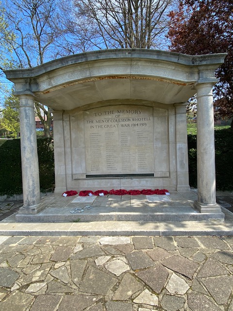 The Coulsdon Memorial Ground was opened in 1921 and was originally part of Edmund Byron’s Coulsdon Estate. Set within the Ground is a portico with a rear wall bearing the names of the fallen, with the inscription “To the memory of the men of Coulsdon who fell in the Great War 1914‐ 1919”. Behind the Ground are deep chalk quarries which in the past had spur lines from the local railway running right into the slopes to transport the extracted stone.