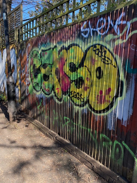 At the end of this route, near the station, is Russell’s Footpath. Until recently, the footpath was overgrown and somewhat daunting to use as a cut through to the High Road. The local community, with the support of Lambeth Council, arranged for a clear up of the overgrown trees and the litter. It’s now a more cheerful place to walk along, in particular as locals have spruced up the walls and fences with graffiti and street art.