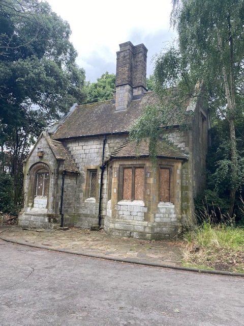 There’s lots to see around here so … first off you’ll come to the Victorian Drinking Fountain in Hollybush Hill. It was erected in 1872 and is an open four-sided canopy. It was donated to the people of Snaresbrook by merchant Samuel Ellis who lived at Snaresbrook House. From here, walk to Snaresbrook Crown Court where the first building you see is an old Gatekeepers Lodge. It was built in 1841, and was purpose built for the orphanage’s bailiff and his wife, the latter of whom was the site’s gatekeeper. Around the 1970s, the lodge became a private dwelling but has remained empty for many years. The lodge is a Grade II listed building in acknowledgement of its group value with the court.