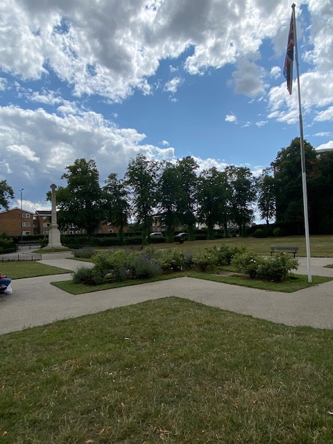 After a wonderful walk in Valentine’s Park, get back on the bus and alight at Newbury Park. Here you will find the Ilford War Memorial Gardens which house both the memorial and a hall which was the children’s wing, created as part of the King George V Hospital and serving as the borough’s other major memorial to those who lost their lives during World War I. The war memorial was paid for by public subscription and opened on 11th November 1922 with an unveiling ceremony carried out by HRH Princess Louise, Duchess of Argyll and Lt General Sir Francis Lloyd. It features a uniformed World War I solider presenting arms and standing guard beneath a Celtic cross. It was made by the same sculptor as the Wanstead Memorial (see above).