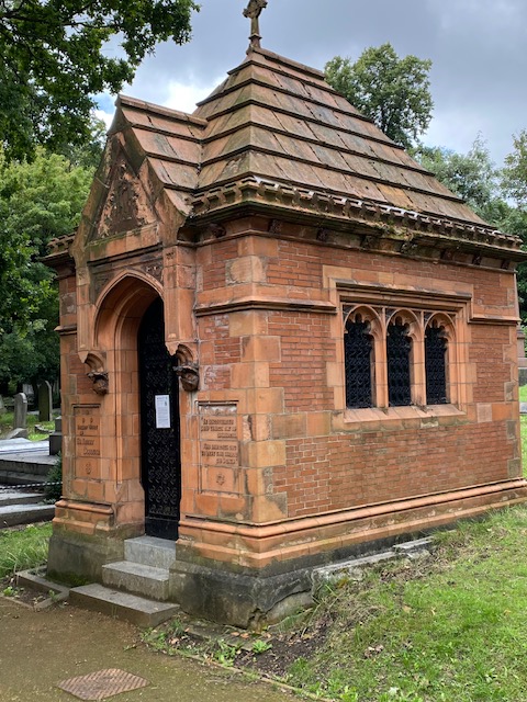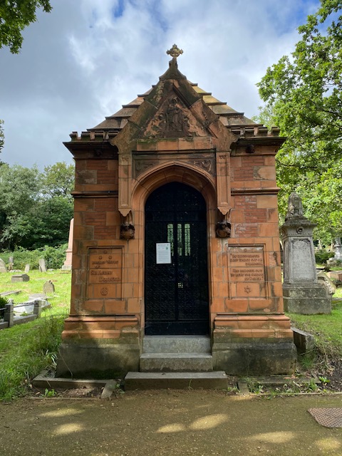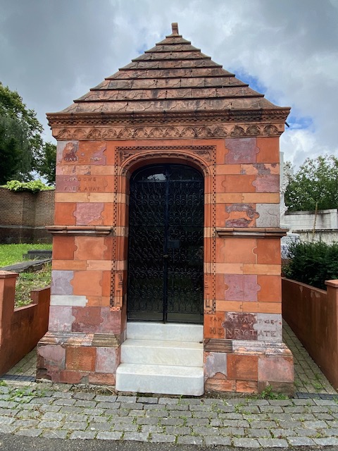 Not far from Reuter’s grave are two more of interest – Sir Henry Doulton and Sir Henry Tate. The former was an inventor and manufacturer of pottery, being best known for developing the firm of Royal Doulton. His mausoleum is of such historic interest that it has been awarded Grade II status. It was built using Doulton terracotta blocks and miniature bricks. The family mausoleum for Sir Henry Tate, the sugar magnate and philanthropist, is a matter of metres away, and was built by the same architect, Harold Peto, in a similar style.