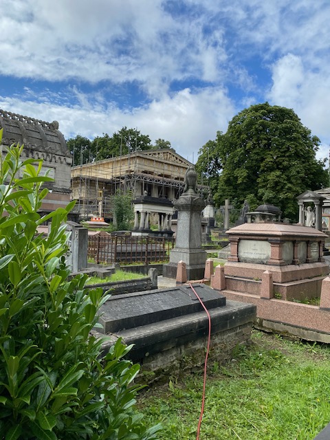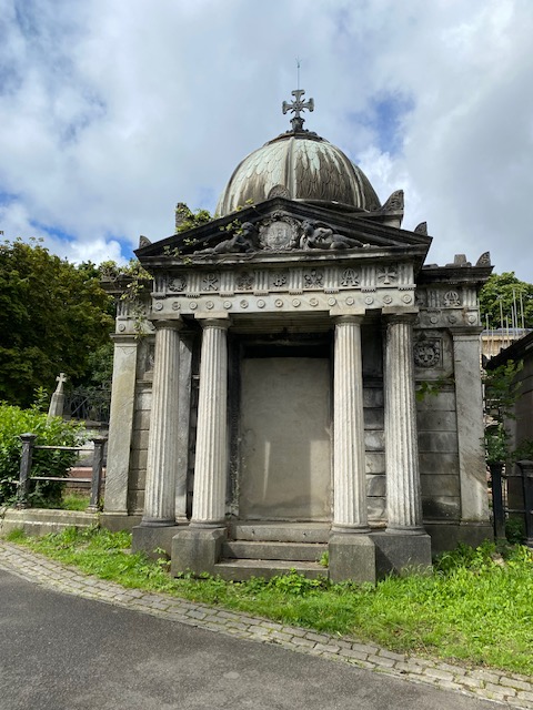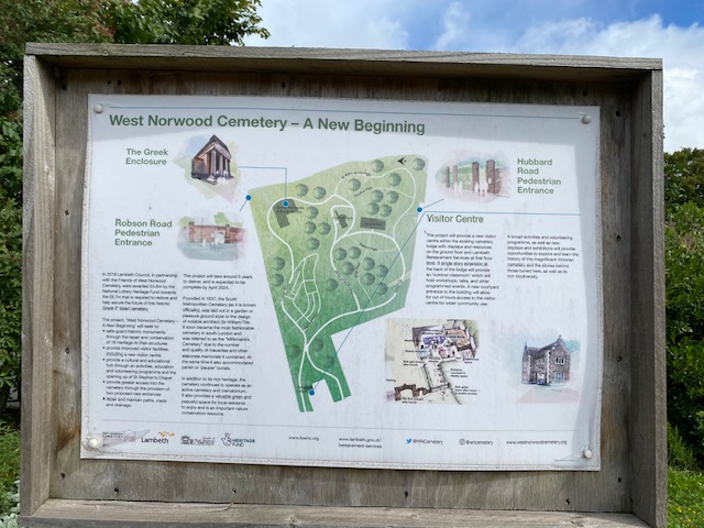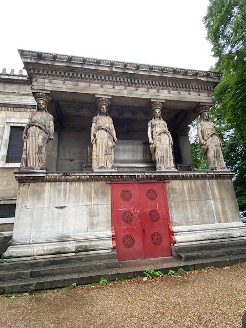 There are many other things of interest to grab attention in the cemetery. There is a Greek “necropolis” with beautiful architecture in the Grecian style – though in the summer of 2023, it’s undergoing renovation. Not long after the cemetery was opened in 1836, members of the Greek community who had settled in London purchased a plot of ground within the cemetery for £300, railing it off and establishing it as a separate burial ground for London’s Greek Orthodox community.