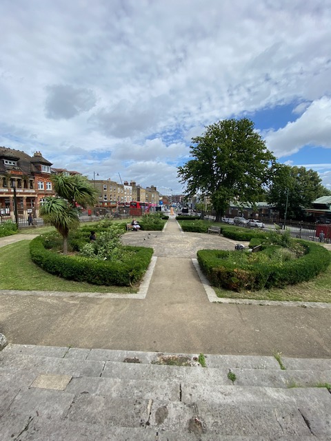 Other bus routes (number 37 for example) stop at Brockwell Park but at different entrances to the one on route 68. As you enter the park, you come across a Drinking Fountain and Cattle Trough. There are sometimes flowers planted in the troughs but this one seems to be neglected, which is something of a shame. Further in the park is Aesthetic Wood Art, a public sculpture that has been carved from a 19-metre branch that fell from a 600-year-old oak tree near the café in the park. The work was commissioned by Lambeth Wellbeing Fund and commemorates all those who died either as a direct or indirect result of the Covid pandemic; it honours those lost to suicide and raises awareness of mental health issues.