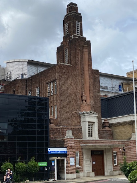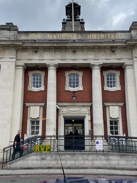 The bus stops opposite Maudsley Hospital. It opened in 1923 and was founded by the eminent psychiatrist Henry Maudsley. His vision was for a hospital where mental healthcare, teaching and research came together. Construction of the hospital was completed in 1915 but before it could open, the building was requisitioned to treat war veterans. After the war it was returned to the control of London County Council and it finally opened as the Maudsley Hospital in February 1923. On the other side of the road is the Guthrie Wing, a stand-alone Art Deco building on the main hospital campus. This lovely building was built in 1937 in a neo-Georgian style.