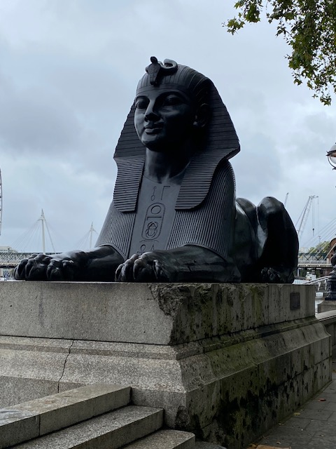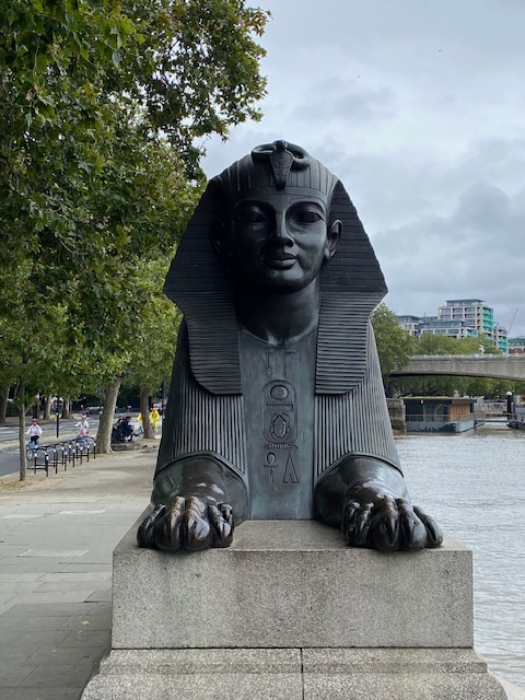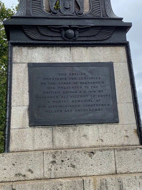 Round the corner along the Victoria Embankment is Cleopatra’s Needle. It’s one of a pair of obelisks that were moved from the ruins of the Caesarium of Alexandria in the 19thC, having been in situ there for the previous 1,800 years. It was presented to the UK in 1819 by the then ruler of Egypt, in commemoration of the victories of Lord Nelson at the Battle of the Nile and Sir Ralph Abercromby at the Battle of Alexandria in 1801. It was brought to its present location in 1878.