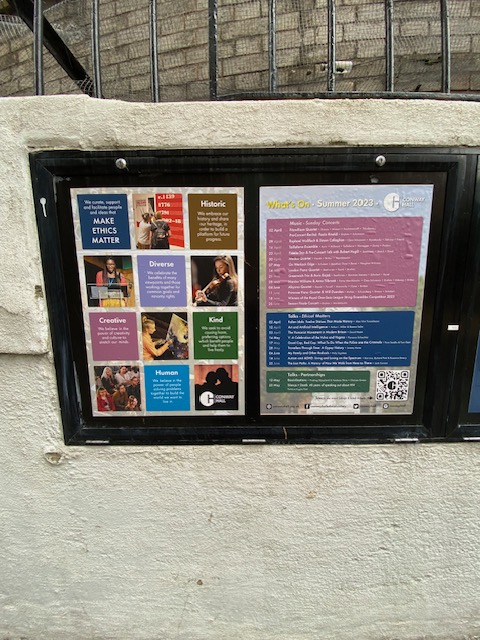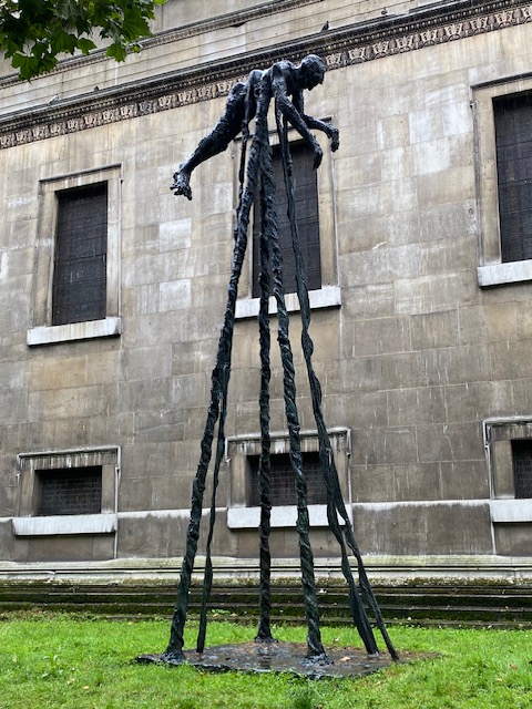 So to the Crypt at St Pancras Church. It’s not open every day but they do put on exhibitions in the gallery so it’s worth checking on their website. Even if it’s closed, there are still some interesting things to see from the outside. One such is a sculpture entitled Flight by David Breuer-Weil. It’s a 7 metre tall bronze sculpture of a figure flying and it marks the restart of international travel after the Covid Pandemic. It was installed in November 2021.