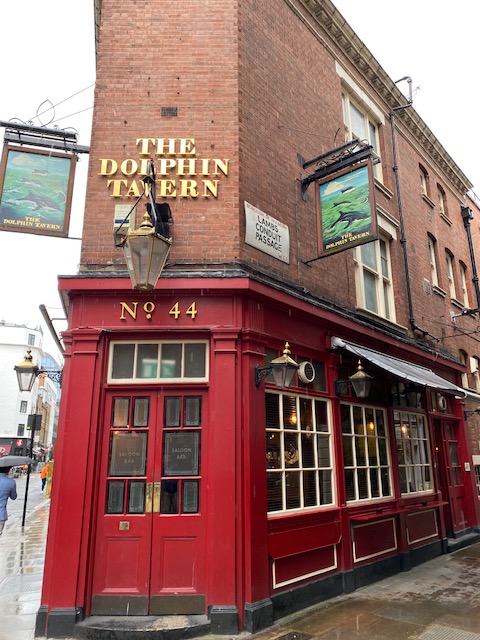 Near Conway Hall is the Dolphin Tavern which is most famous for having a clock that is frozen in time. The pub was very badly damaged by the first ever silent but deadly zeppelin raid on London. On the 8th September 1915 an explosive landed just outside the pub killing a man outside and two inside. The pub was rebuilt after the war and the old clock was discovered in the rubble, the time of the explosion showing as 10.40pm.
