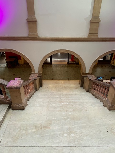 The building has lost none of its charm – the entrance hall is sumptuous with marble staircases and stone archways. There are gothic corridors and mosaic floors and you can see straight away why it’s used as both a film location as well as a perfect wedding venue. Mainly they put on events – plays, musical shows, dance – using the various rooms for rehearsals and studios and the productions in the Grand Hall.