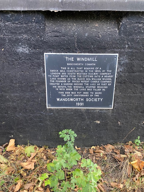 The stop is very near Wandsworth Common and the Wandsworth Common Windmill. The Windmill was built in 1837 to drain water from the railway cutting of the London and Southampton Railway. The water was pumped into an ornamental lake on Wandsworth Common known as the Black Sea, which had been dug by the founder of Price’s Candle Works. The mill was still working in 1870 but the Black Sea was drained and filled in around 1884. The mill then lost its purpose and ceased work, with the sails and fantail being removed. What is left here is all that remains of the smock mill – a small hexagonal mill built on a low brick base. It had a small cap and was powered by four Patent sails. The cap was winded by a fantail.