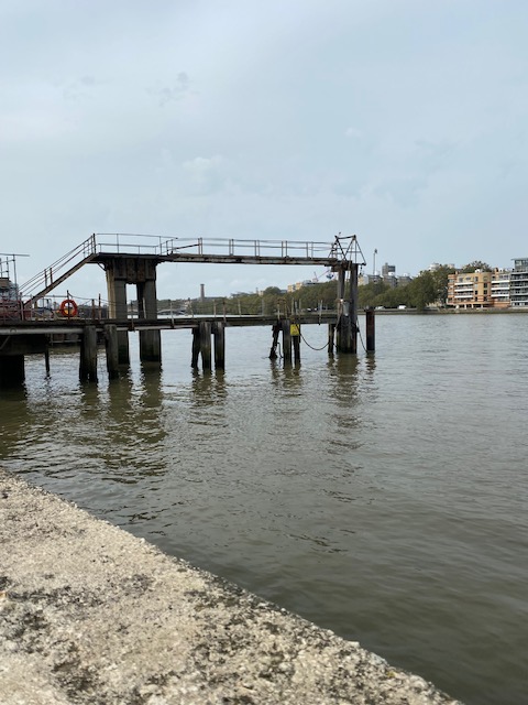 Before getting back on the bus, take a quick trip to the river and find Prescot Wharf, a small wharf which appears to be used for flower displays. On the nearby pavement it states “Prescot Wharf – Archangel & St Petersburg mats. Dutch bulbs”.
