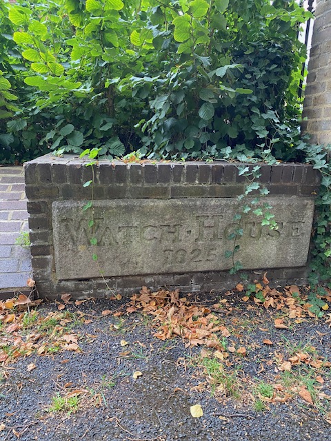 Head towards The Watch House next to Lambeth High Street, where there is now mounted into a low brick wall of the Recreation Ground, a large stone, inscribed in large letters with the words ‘Watch House 1825’. The stone was once set into the front wall of a two-storey house, the Parish Watch House of Lambeth. Its purpose was to hold the drunk and disorderly. The building is believed to have been demolished between the First and Second World Wars.