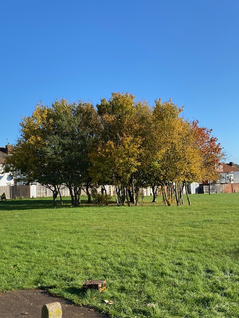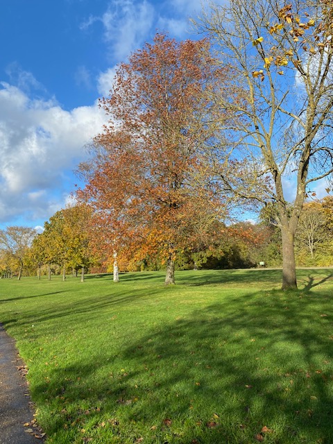 Heather Park is the first of many parks on this route. It is a small open space, which has recently undergone some refurbishment and improvements. At this time of the year (mid November) the trees are still in leaf with typical autumnal colours and are very pretty.